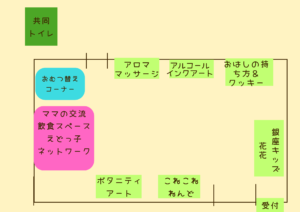 /手形アート/アロマ(ヘッド&ショルダー)/美しいお箸の持ち方レッスン(全6ブース)+受付+キッズスペース・休憩広場