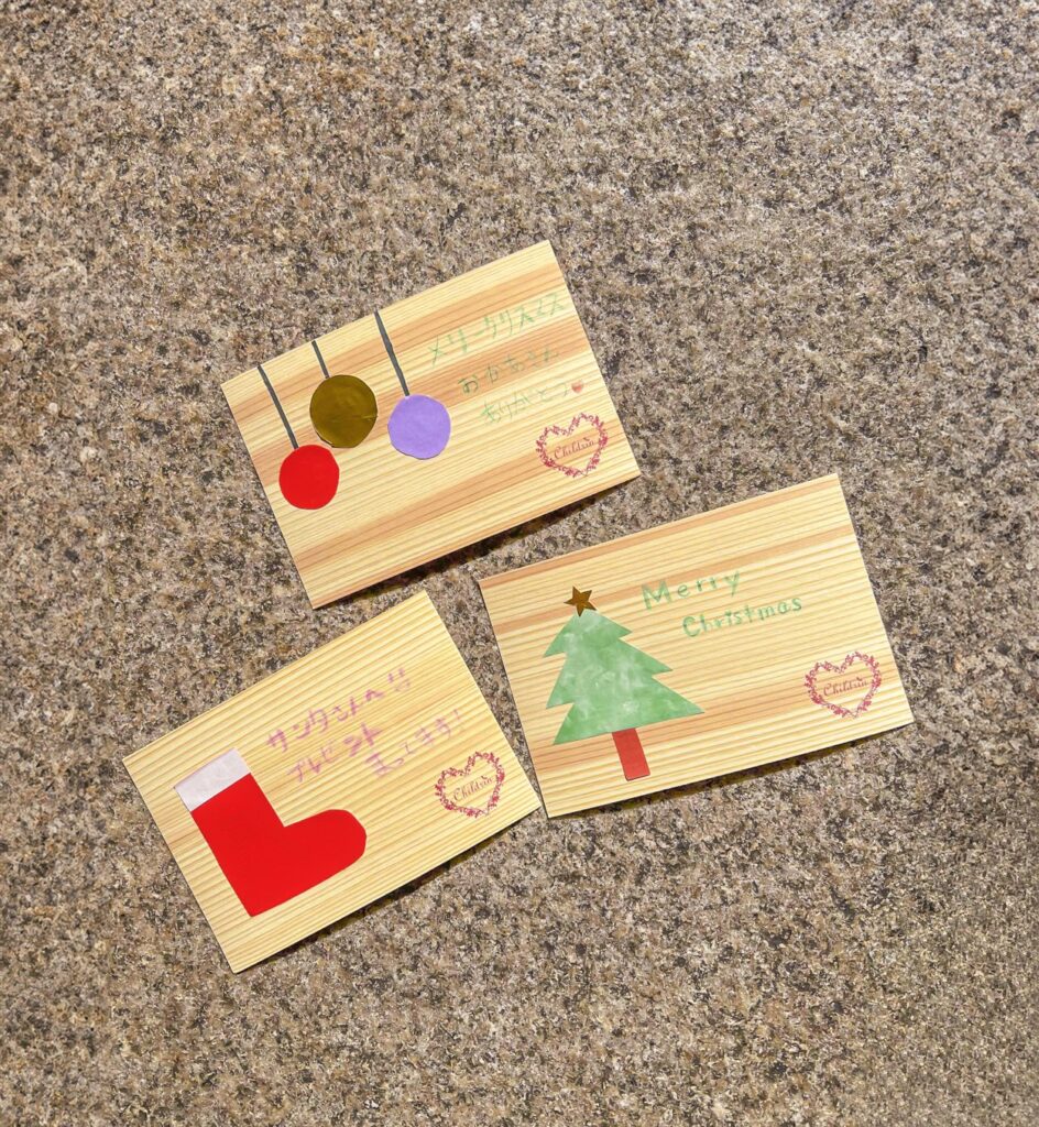 徳島の県産材のハガキで、クリスマスカードを作って飾りましょう♪
