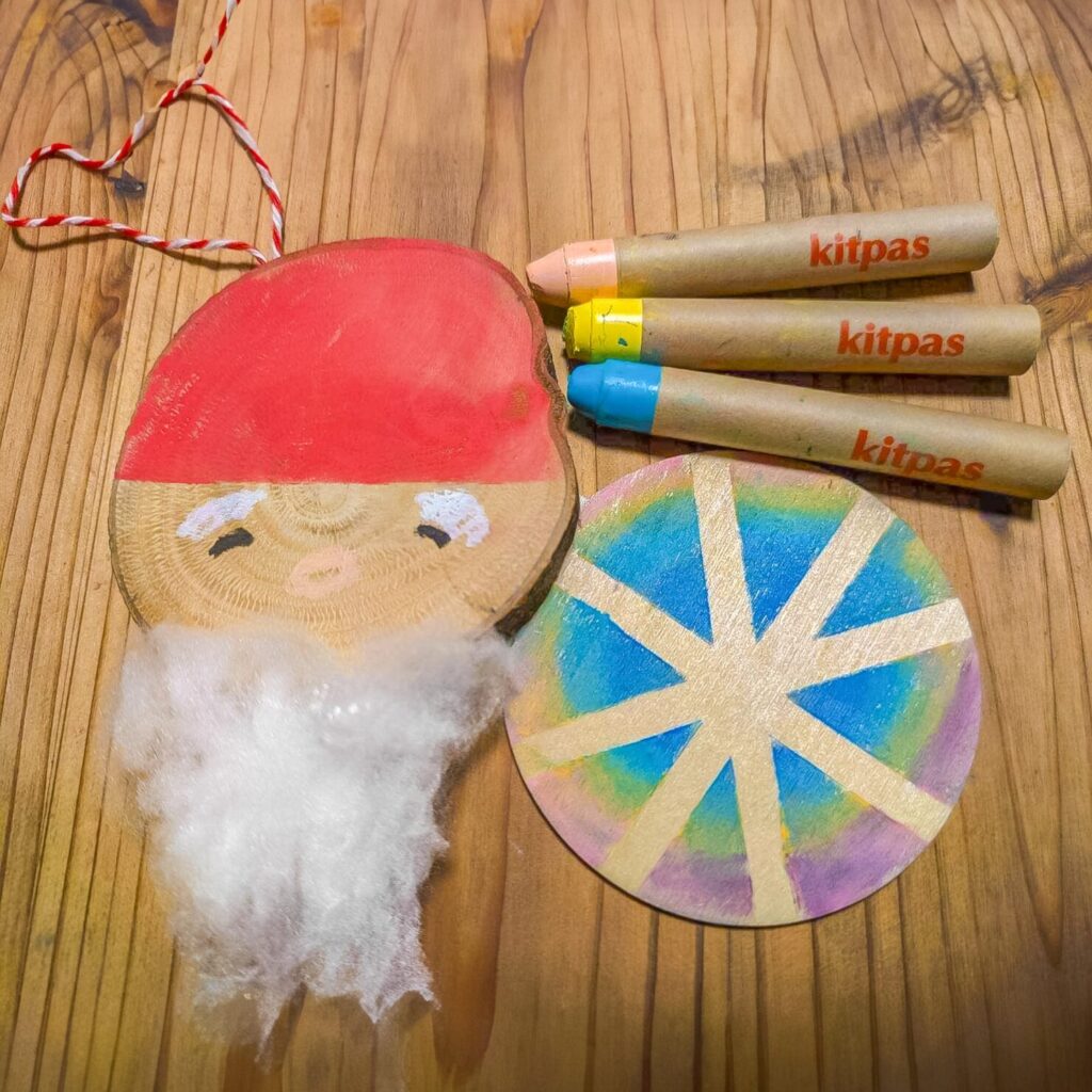 キットパスを使って切り株に色を塗ってオリジナルのクリスマスオーナメントをつくりましょう!