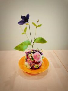 小花のアレンジメントを器に見立てて、お花を活けます。